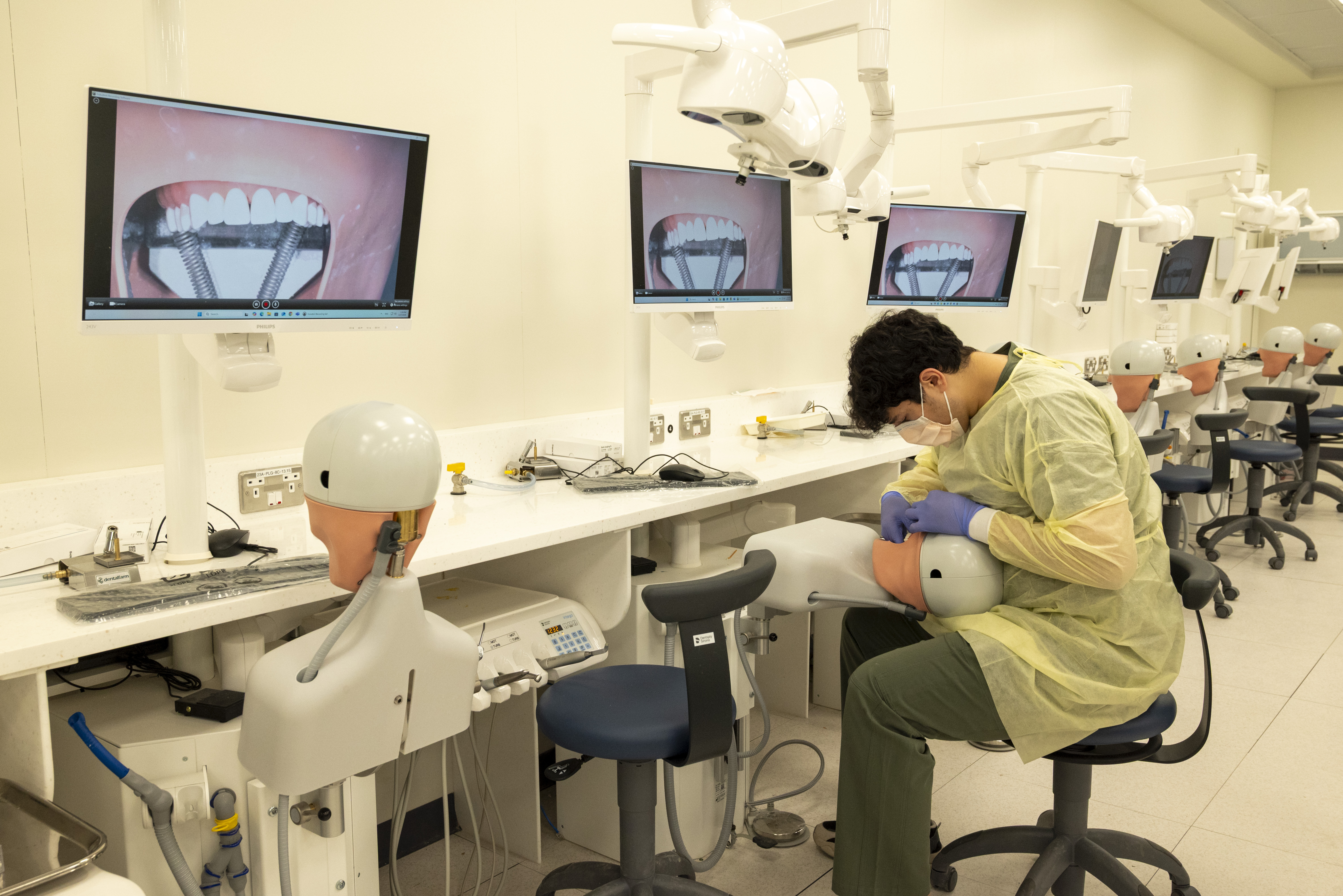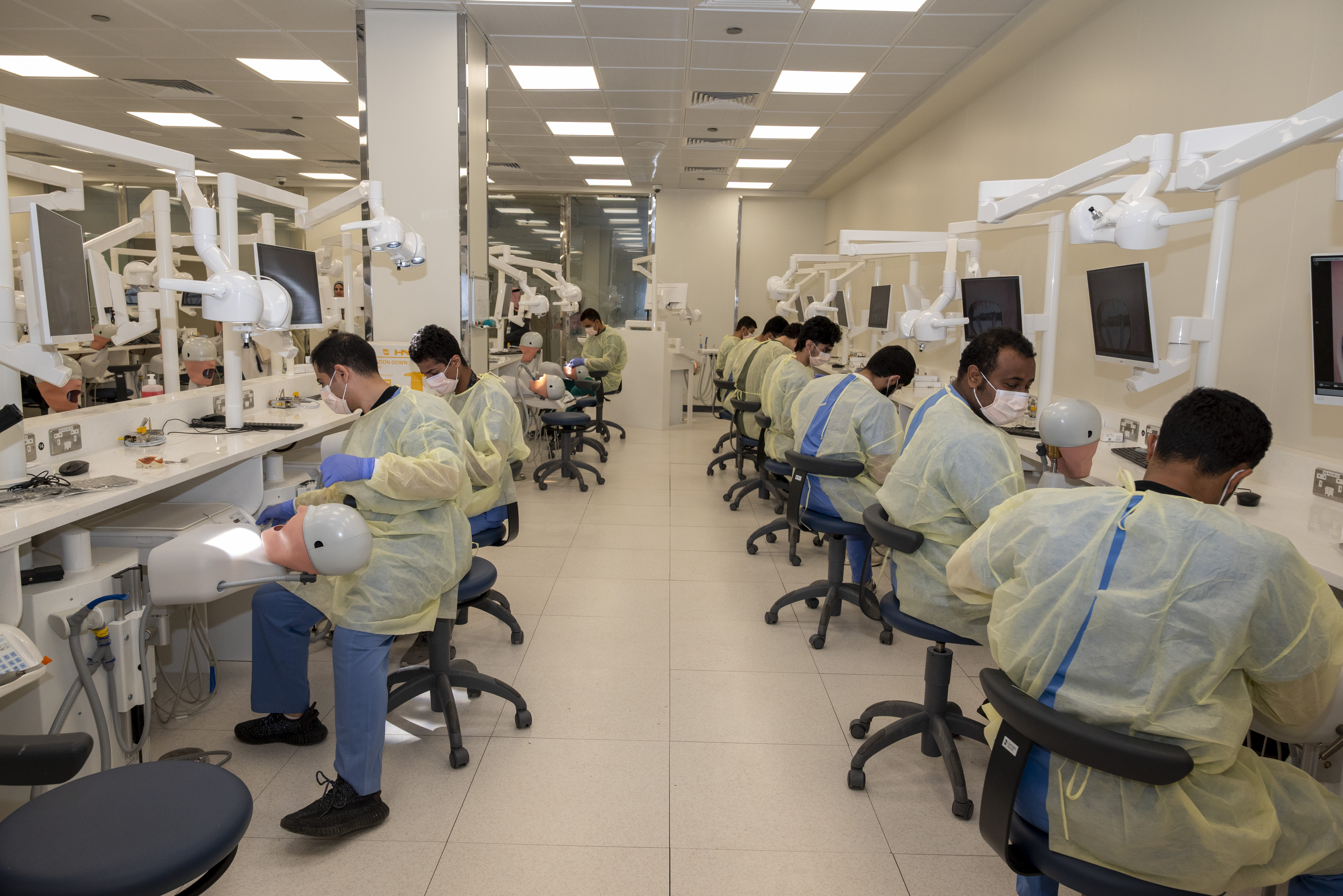 - ● التدريب في البرنامج يبدأ تدريجيًا من المختبرات التعليمية والمحاكاة في السنوات الأولى في معامل كلية طب الأسنان إلى التعامل مع المرضى الحقيقيين في عيادات مستشفى طب الأسنان الجامعي.